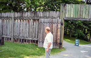 Here Les examines the fort wall made from 12" logs. Because of this wall everything is quiet inside the fort even though there is quite a lot of traffic noise outside.