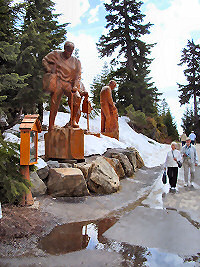 Huge carved images adorn every pathway and there was still some snow left at this elevation.