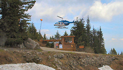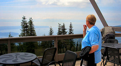 Here she is enjoying the ride high above the majestic douglas firs on the mountain below.