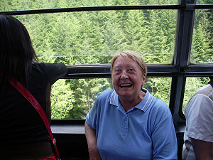 North America's largest aerial tramway the Grouse Mountain Skyride would take us one mile up the mountain and to our delight Val had decided she wanted to go.